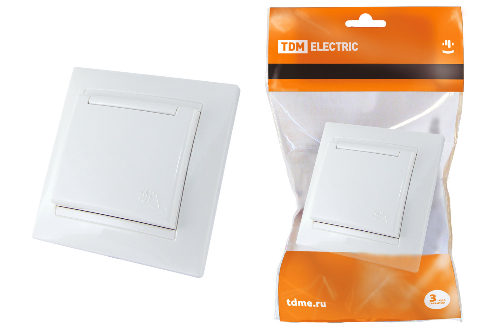 Розетка 2П+З 16А 250В IP44 с защ. шт. с крышкой белая "Лама" TDM